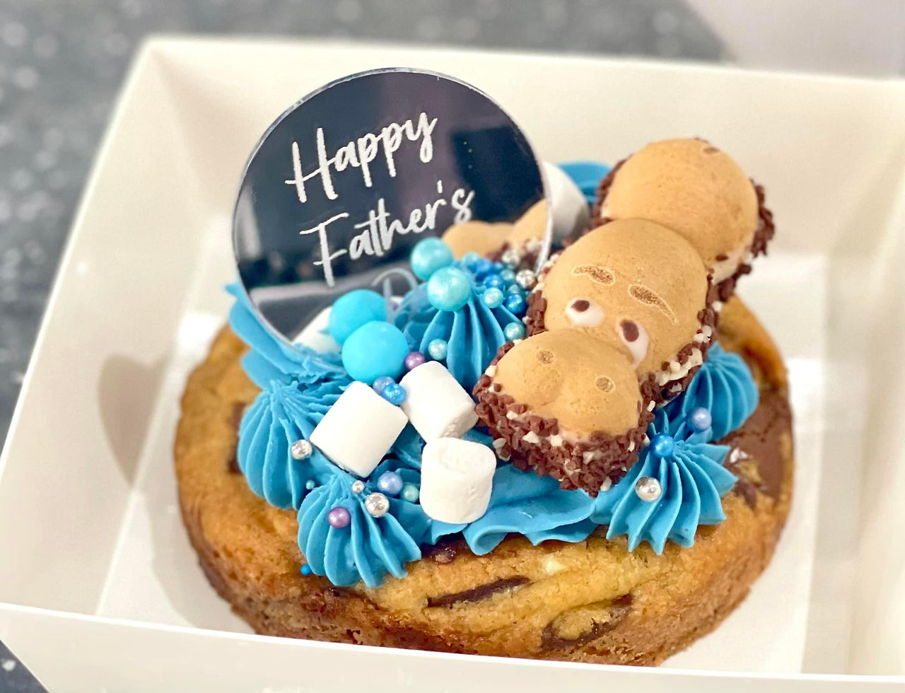 Triple chocolate 4” cookie, decorated as per the picture (I can add a different chocolate if he can’t have kinder). Comes boxed in a clear lidded presentation box.
